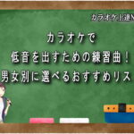 練習曲として「チェリー」「3月9日」などシンプルな曲から始め、徐々に難易度を上げていきましょう。低音が歌えるようになれば選曲の幅が広がり、カラオケがもっと楽しくなります。